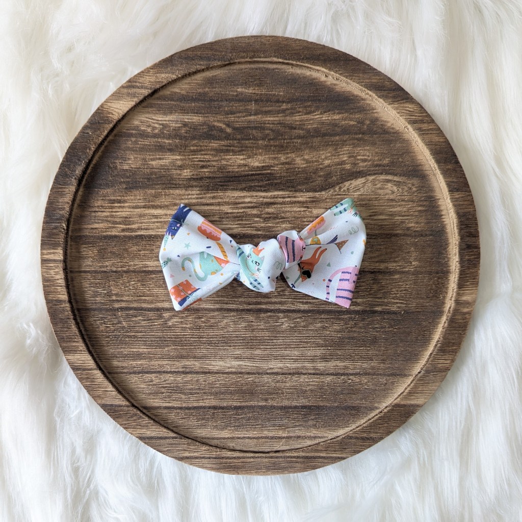 All Knot Bows are approximately 4″-4.5″ wide and come attached to your choice of an alligator clip, nylon headband, or Velcro loop (unless otherwise specified below).